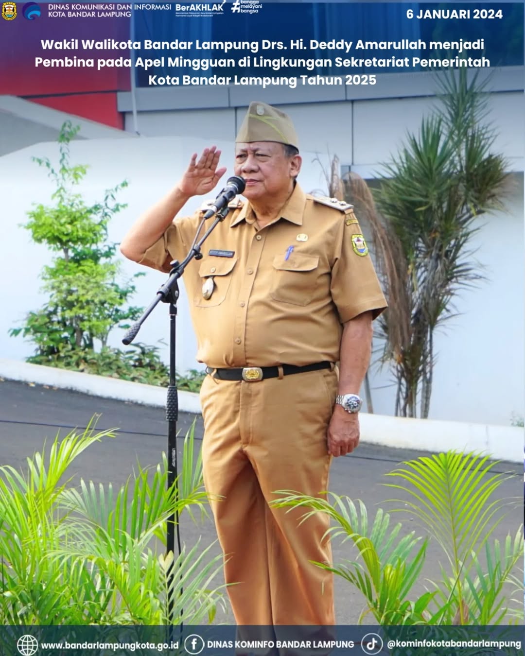 Wakil Walikota Bandar Lampung Drs. Hi. Deddy Amarullah menjadi Pembina pada Apel Mingguan di Lingkungan Sekretariat Pemerintah Kota Bandar Lampung Tahun 2025.